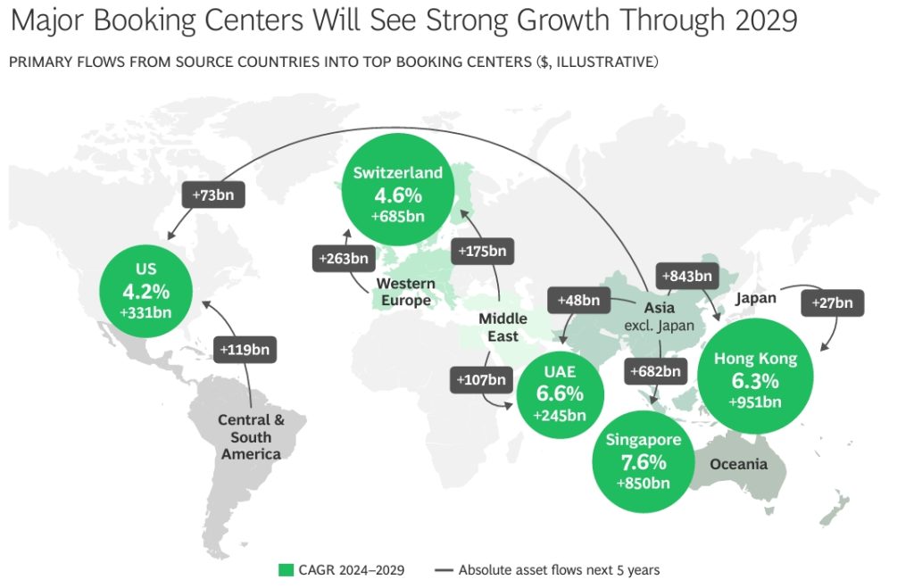 For wealth managers, this underscores the need to rebalance growth strategies and potentially strengthen presence in these high-growth corridors and booking centers.